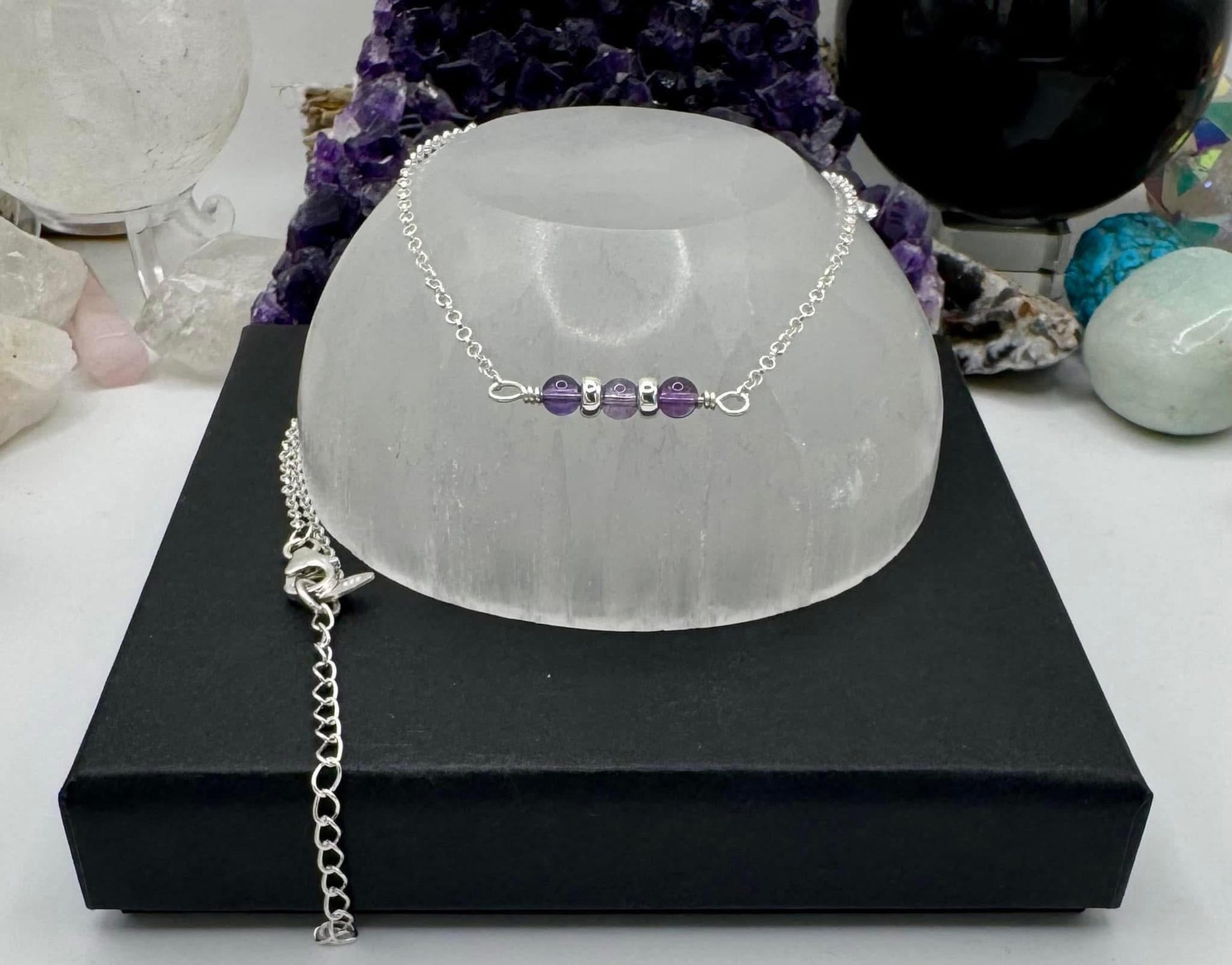 Amethyst and Sterling Silver 18” necklace with 2” extension chain.