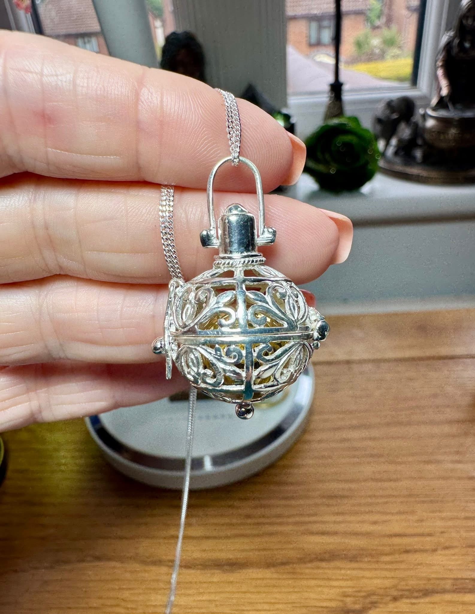 🤍The Mexican Bola, also known as a ‘harmony ball or ‘angel caller’, is a traditional chiming pendant steeped in hundreds of years of Mayan history. Worn by expectant mothers during pregnancy the chime pendant is worn low, resting against the bump so that any movement means baby hears the gentle ringing sounds.