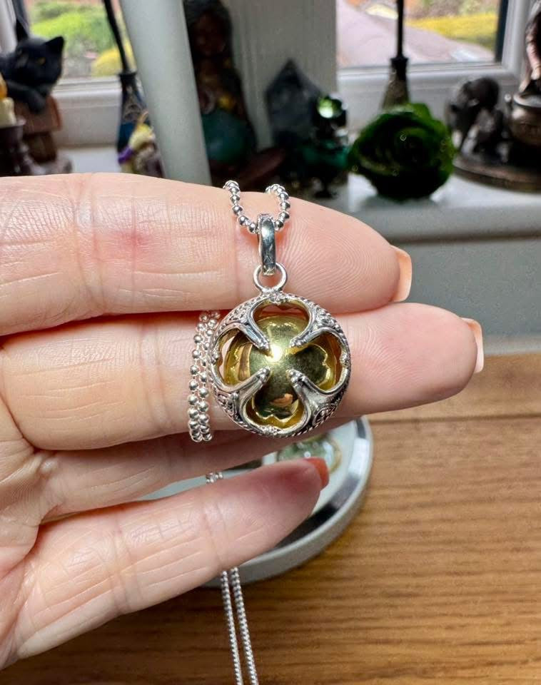 🤍The Mexican Bola, also known as a ‘harmony ball or ‘angel caller’, is a traditional chiming pendant steeped in hundreds of years of Mayan history. Worn by expectant mothers during pregnancy the chime pendant is worn low, resting against the bump so that any movement means baby hears the gentle ringing sounds.