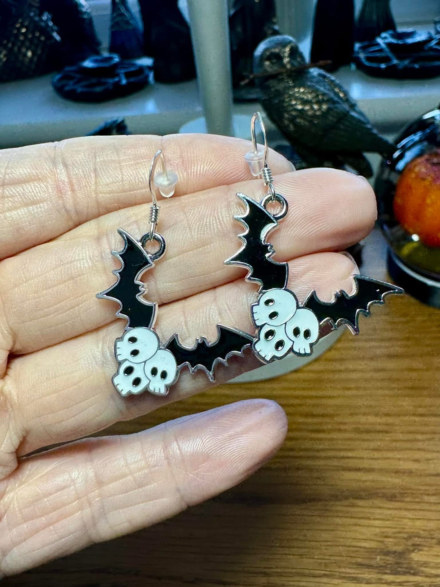 Metal alloy bat wings with sterling silver shepherds hooks and silicone stoppers