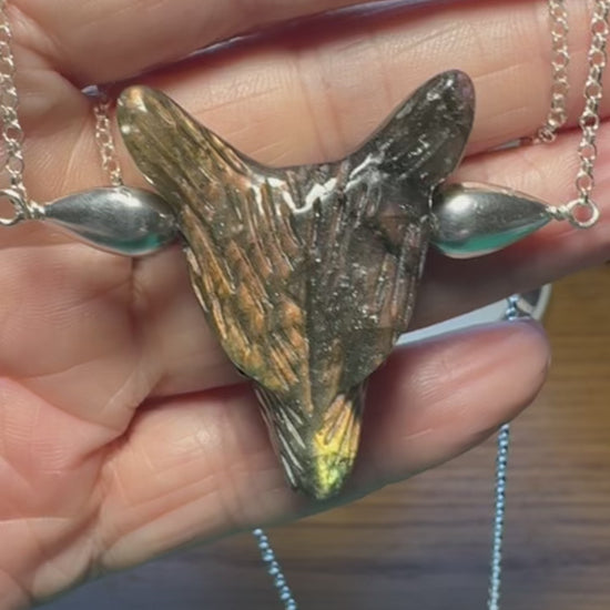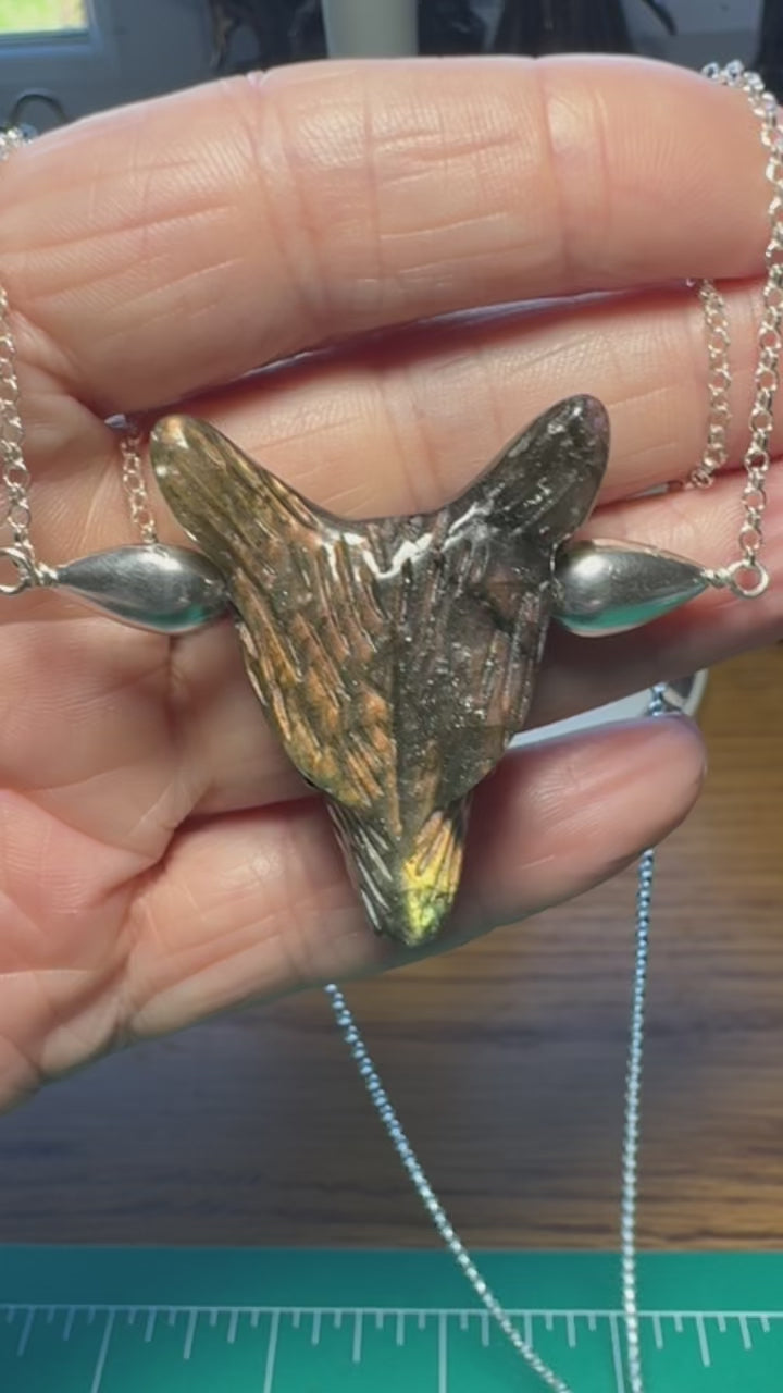 FLASHY LABRADORITE WOLF HEAD NECKLACE WITH PURPLE!!!