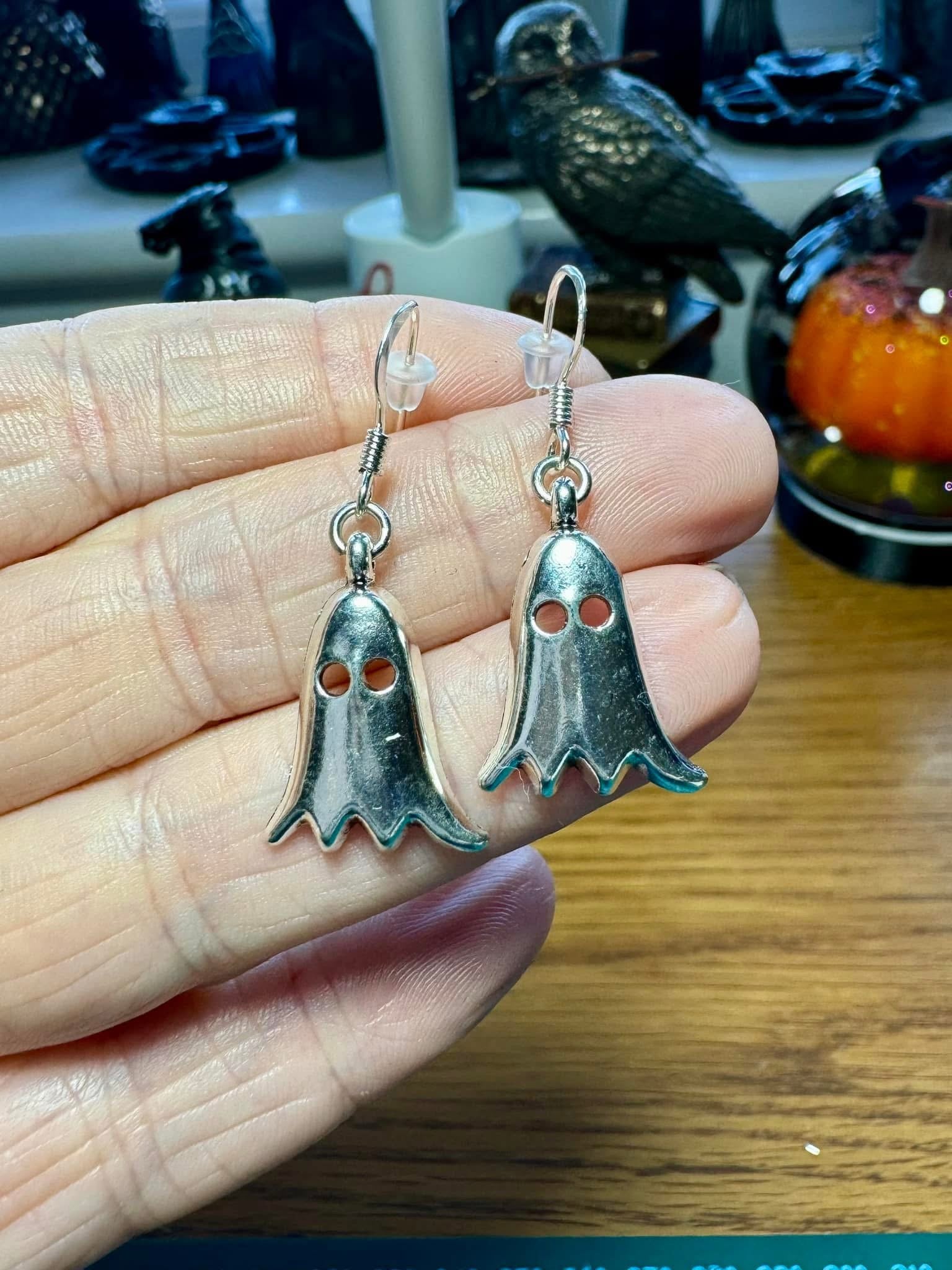 Metal alloy ghosts with sterling silver shepherds hooks and silicone stoppers