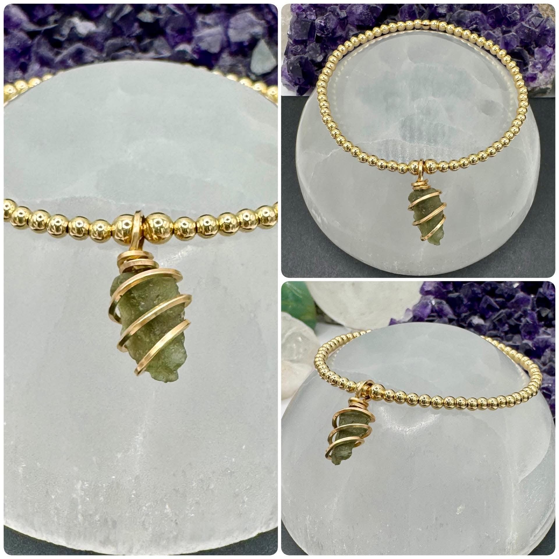 The gorgeous green of Moldavite goes so well with yellow gold!!