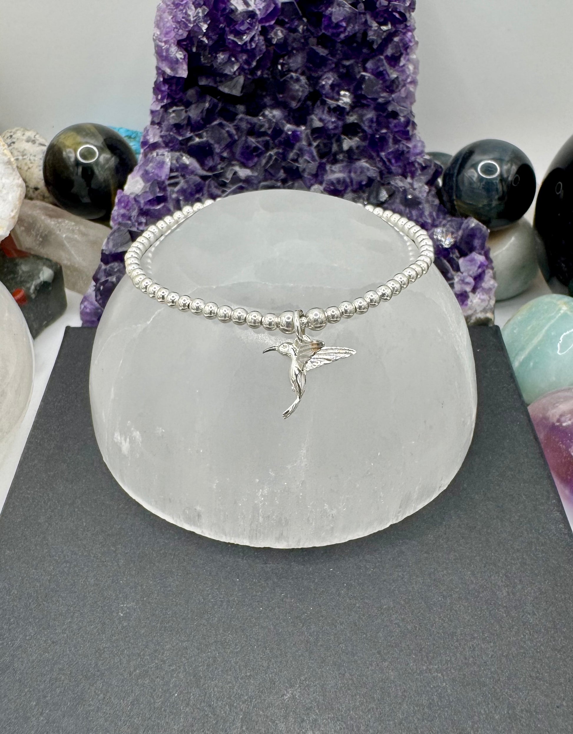 4D Hummingbird beaded Bracelet. .925 sterling silver.