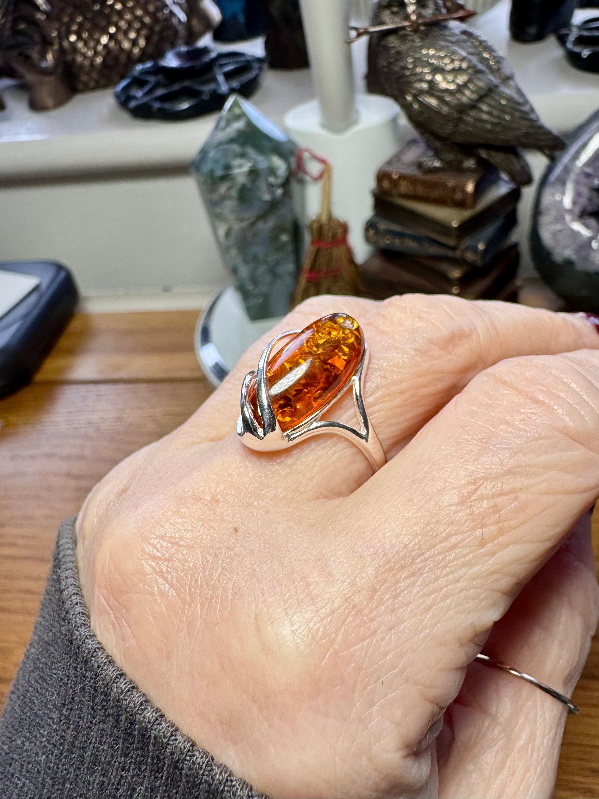 .925 Sterling silver and adjustable, these Amber rings are absolutely beautiful.