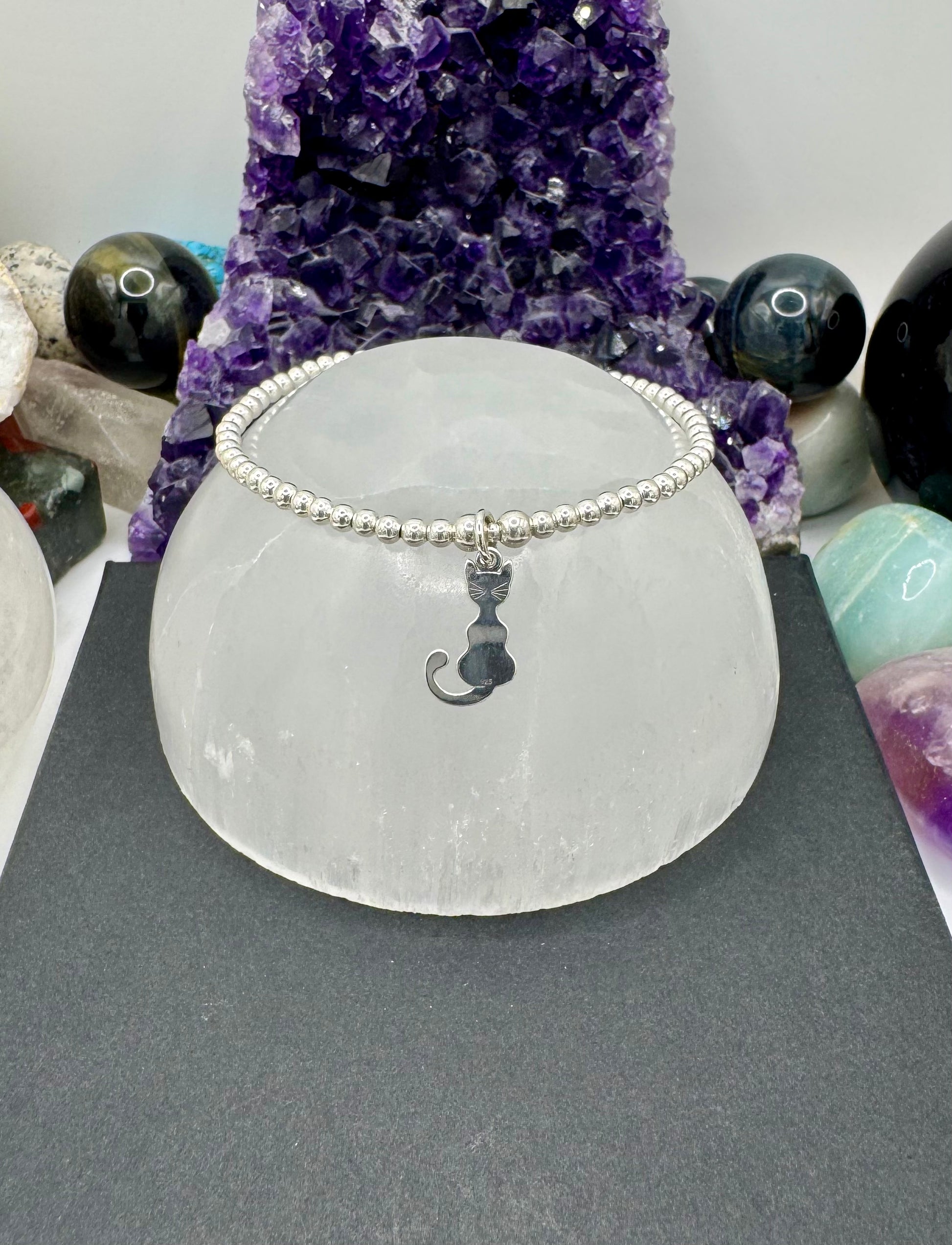 Cat beaded Bracelet. .925 sterling silver.