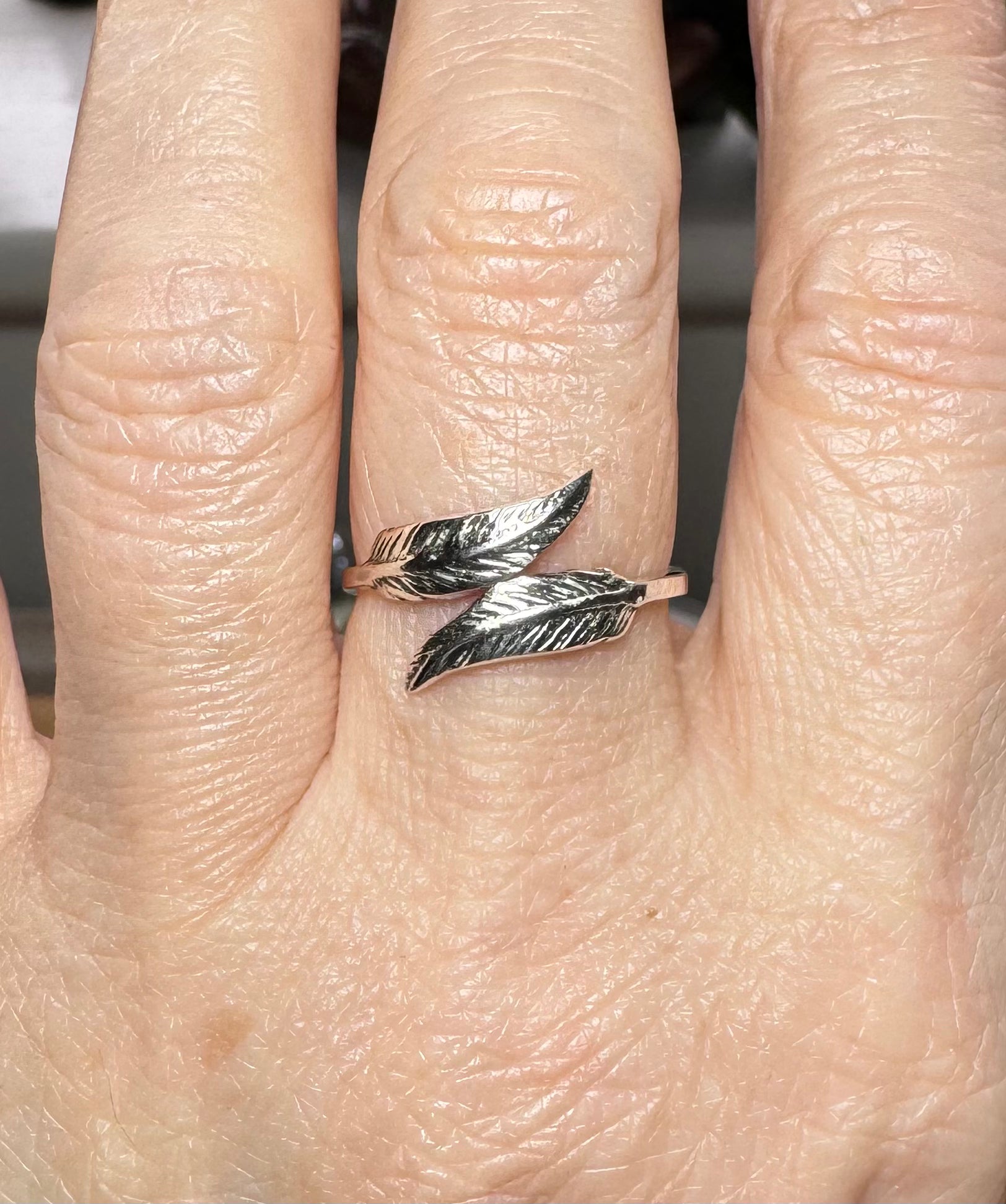 ✨Sterling silver as always, these gorgeous rings feature 2 detailed feathers. They can probably be adjusted (gently) smaller or larger than the sizes they sit at.
