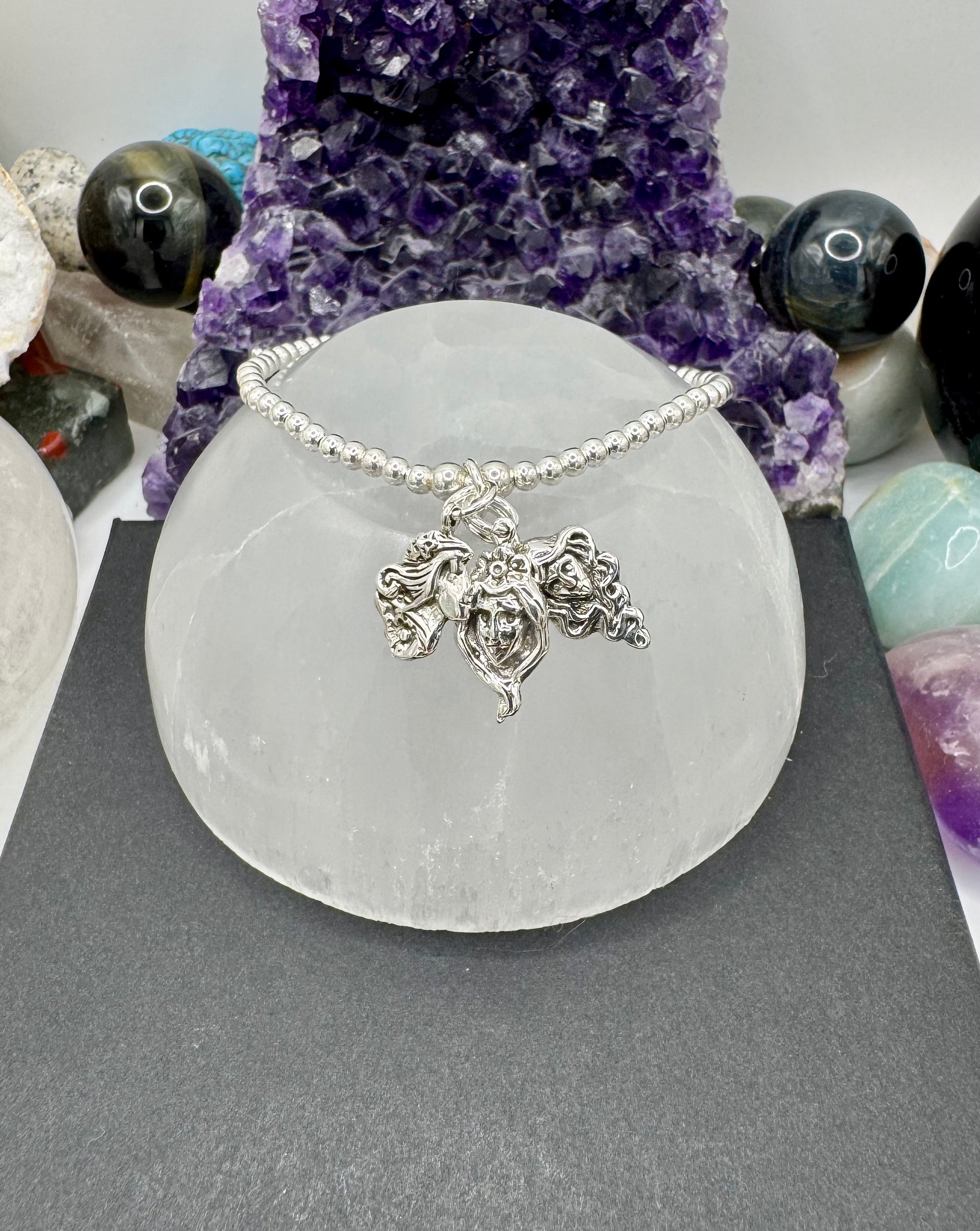 Maiden, Mother, Crone beaded Bracelet. .925 sterling silver.