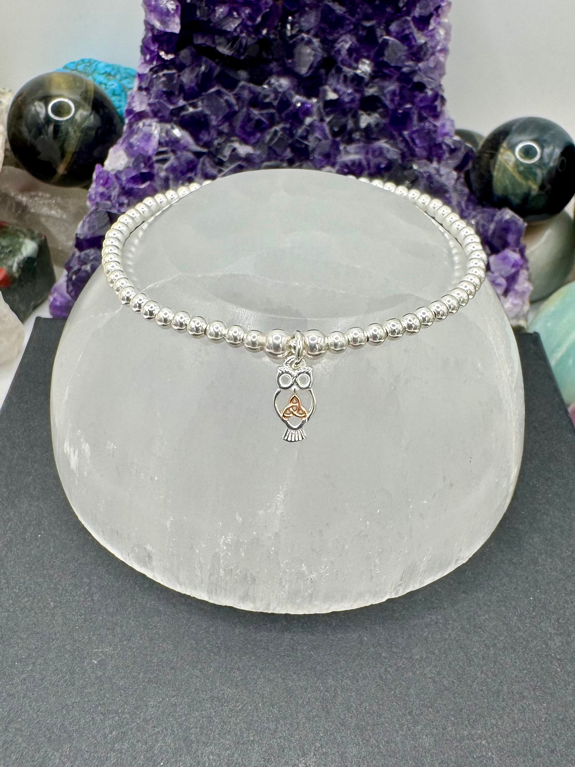 STERLING SILVER OWL WITH TRIQUETRA BRACELET