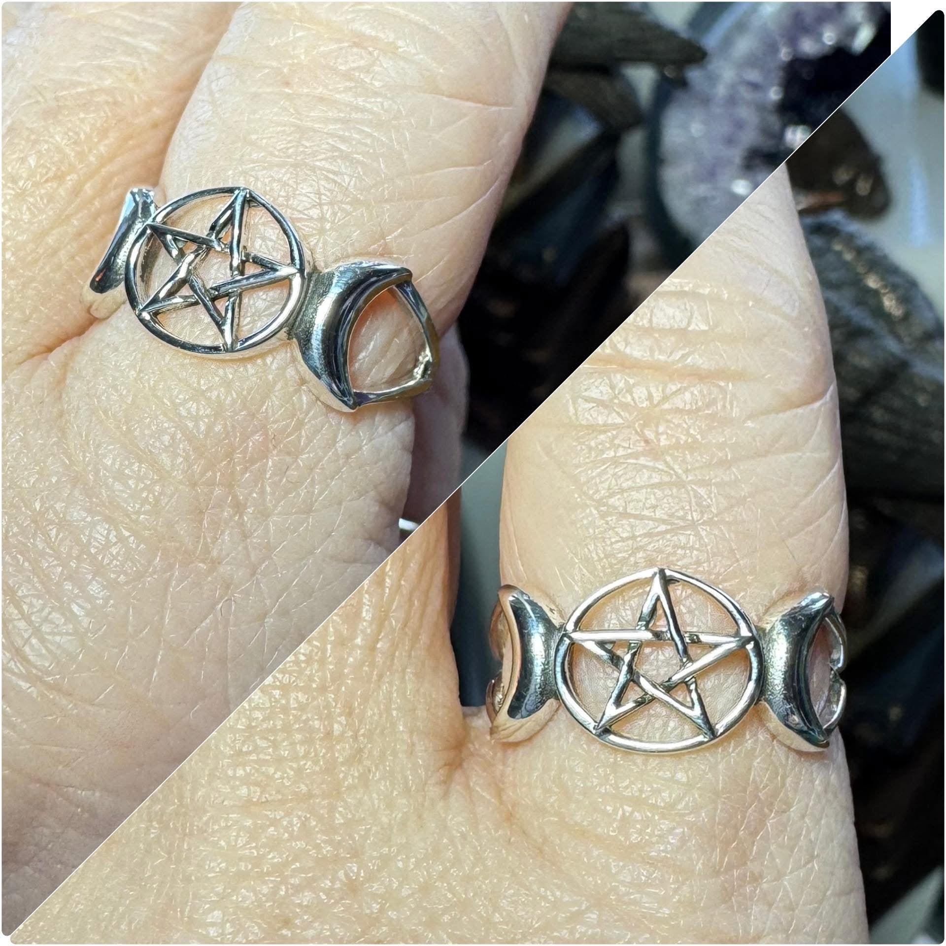 These Triple Moon Pentagram rings are .925 sterling silver.