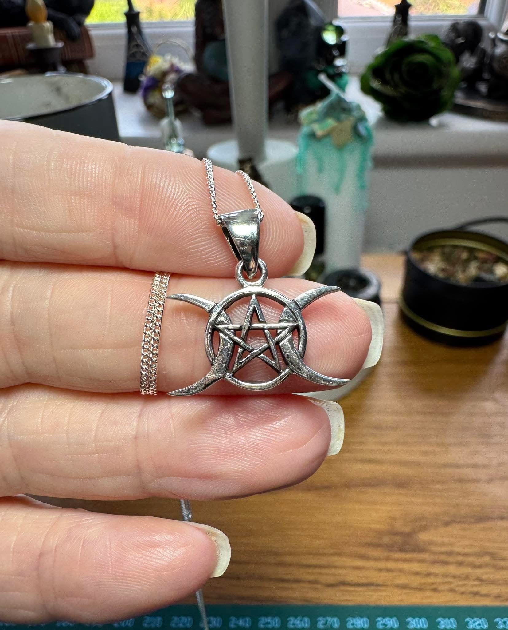 STERLING SILVER TRIPLE MOON PENTAGRAM NECKLACE