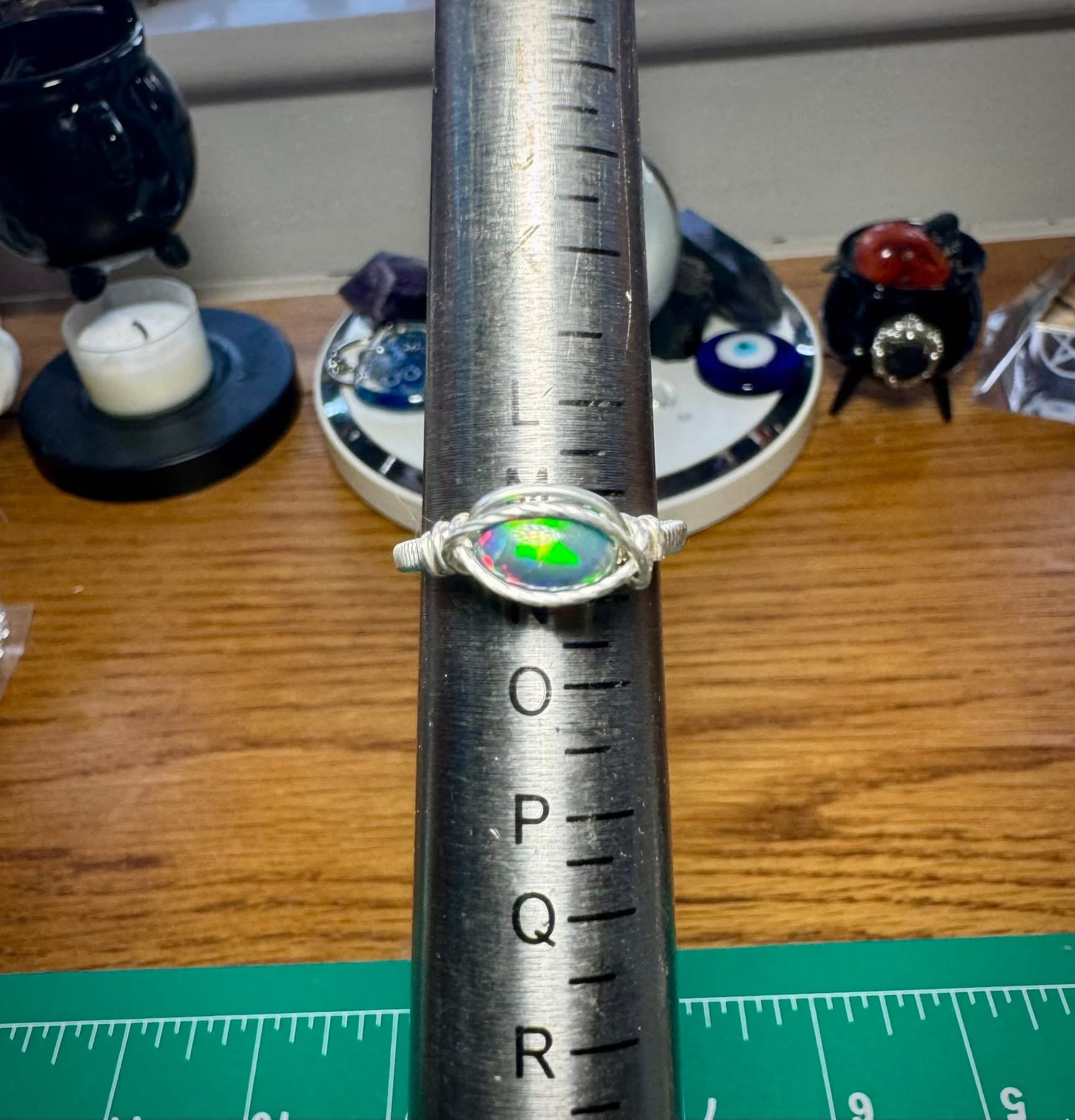🖤This flashy little smoked Black Welo Opal oval measures approx 10 x 8mm. It has been wrapped in sterling silver.