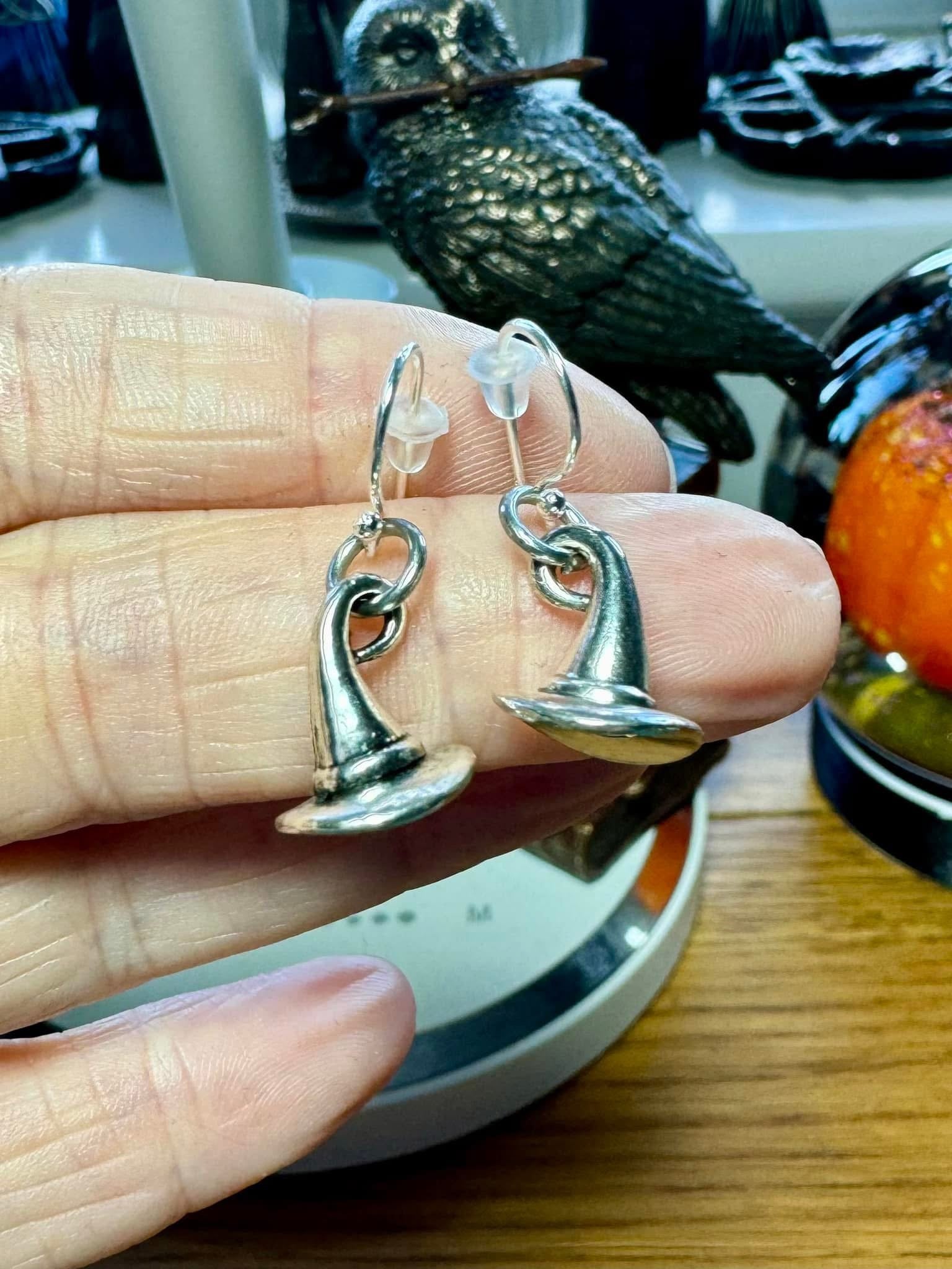 Metal alloy witch hats with sterling silver shepherds hooks and silicone stoppers